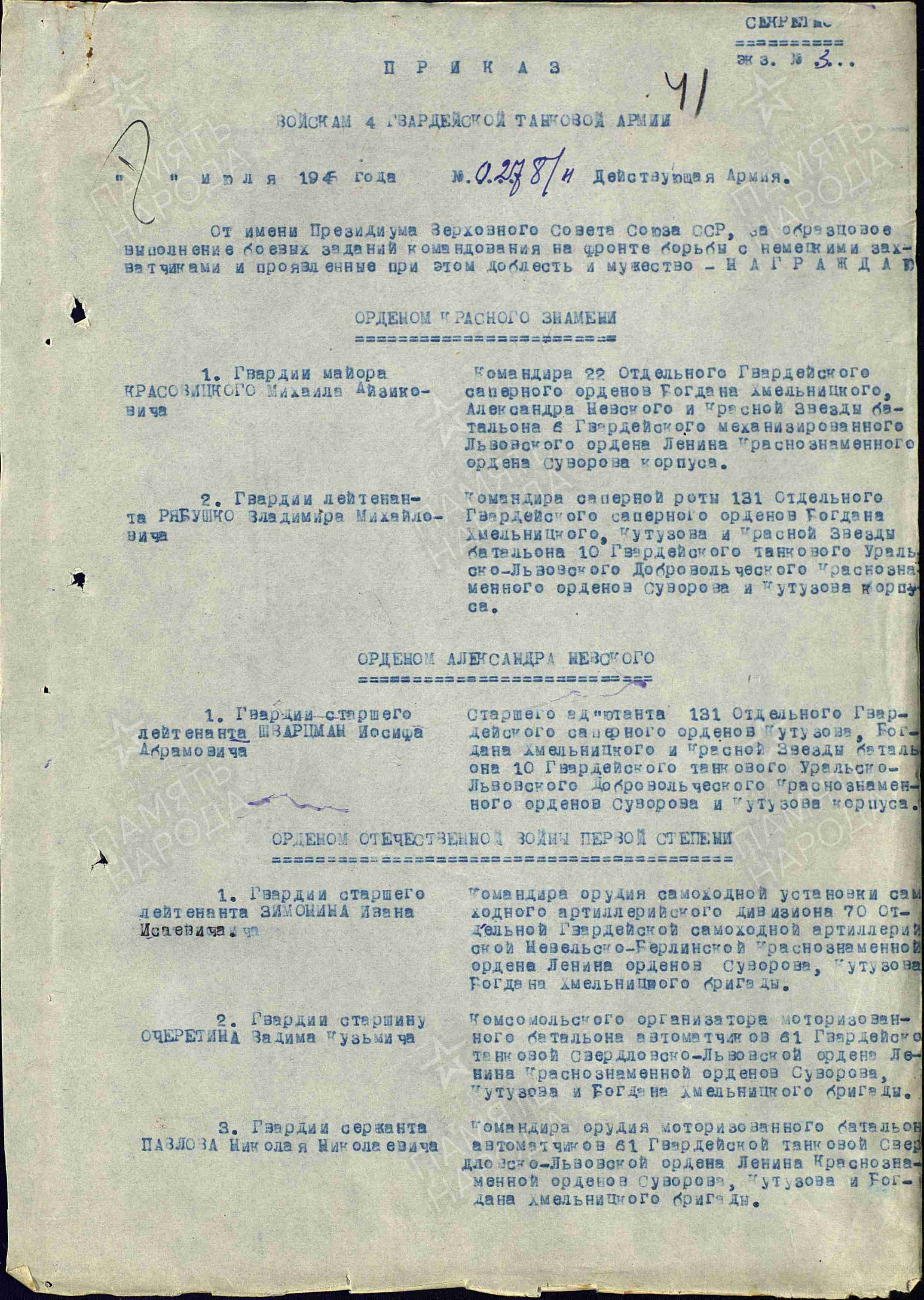 В Ирбитском историко-этнографическом музее хранится книга уральского писателя, журналиста Вадима Кузьмича Очеретина «Я твой, Родина», рассказывающая о боевом пути Уральского добровольческого танкового корпуса. На титульном листе надпись: «Моему однополчанину Петру Чащину. В. Очеретин. 1951 год». Книга подарена нашему земляку Петру Семеновичу Чащину, ставшему одним из героев повести. Вместе они дошли до Берлина, освобождая города и села.